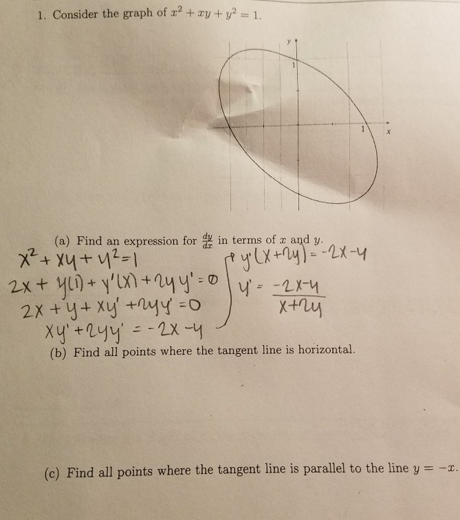 Consider The Graph Of X 2 Xy Y 2 1 A Find An Chegg Com